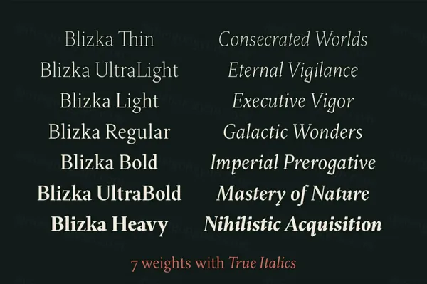 Blizka 是一款有趣的书法衬线字体,具有许多特点!受到艺术家钢笔或铅笔独特笔触的启发,它以直线切割为特色,呈现出意想不到的细节。对细节的高度关注使所有字母和谐地流动在一起,以获得最佳的小文本阅读体验。