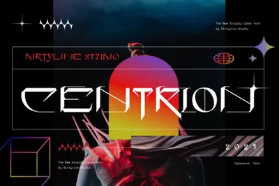 图穷联素材库 » 潮流赛博朋克未来派科幻新视觉电影海报杂志排版设计英文字体 Centrion Typeface