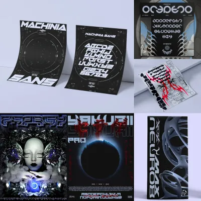 图穷联素材库 » 6款潮流史诗级酸性艺术赛博朋克几何抽象英文装饰字体 3XPYRE - TYP3PACK