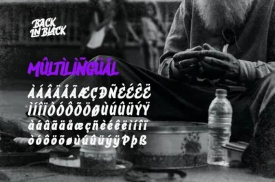 Back in Black 是一种手绘笔刷字体,试图反映郊区墙壁的城市氛围。这种字体富有表现力的笔触风格模仿了涂鸦和其他街头艺术的外观,大胆的笔触产生了引人注目的、引人注目的图形。