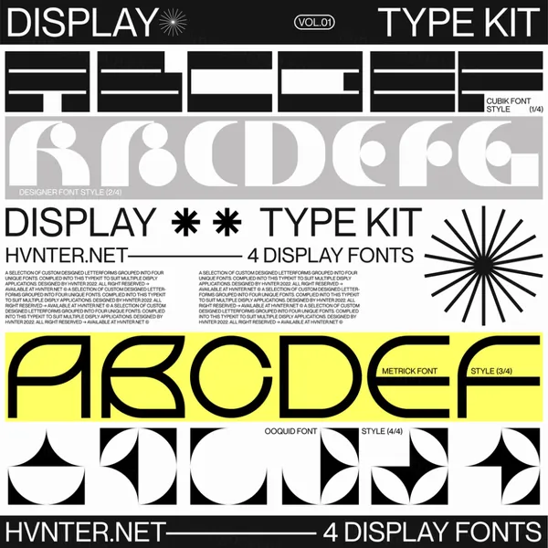 包括精选的 4 种独特设计的显示字体!