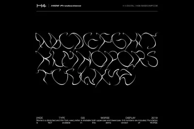 图穷联素材库 » 潮流未来酸性扭曲逆反差潮牌服饰地下先锋嘻哈英文装饰字体 WORSE Demo [HIDE TYPE 02]