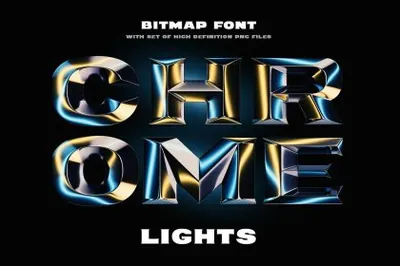高质量三维渲染镀铬金属3D英文字体 Chrome Lights - Bitmap Color Font