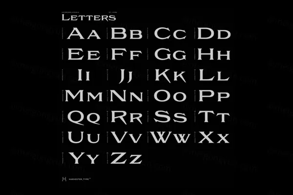 图穷联素材库 » 高质量复古经典未来主义历史厚重结合美学尖锐衬线英文字体 Harvester Type-Sodra