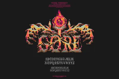 图穷联素材库 » 潮流酸性艺术街头潮牌先锋服饰海报标题设计英文装饰字体 Gore Typeface