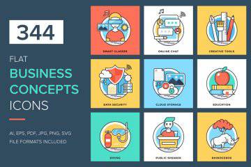 344个平面业务概念图标 344 Flat Business Concepts