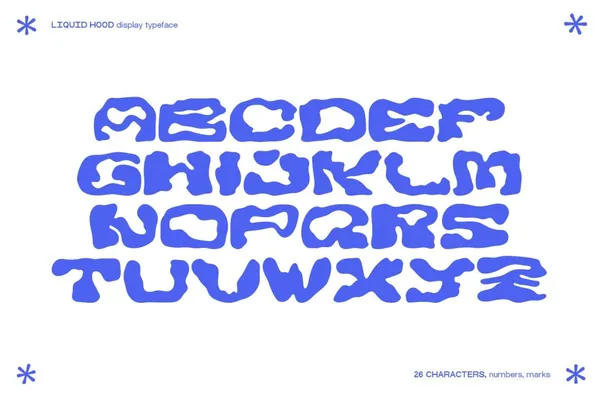 图穷联素材库 » 潮流酸性艺术液体心丑风反设计笨拙稚嫩笔触英文字体 LIQUID HOOD Display Typeface