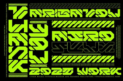 潮流复古赛博朋克工业科技机能机甲现代几何英文字体 Aero Flux Cyber Mecha Font