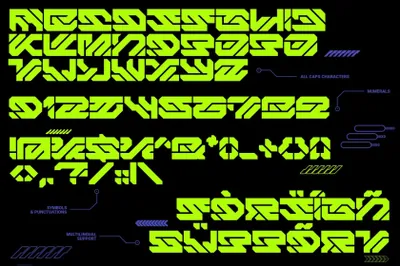 图穷联素材库 » 潮流复古赛博朋克工业科技机能机甲现代几何英文字体 Aero Flux Cyber Mecha Font