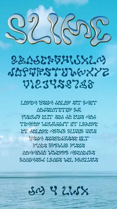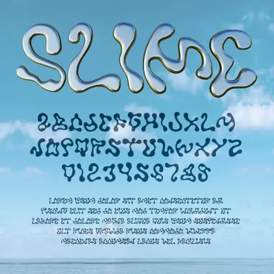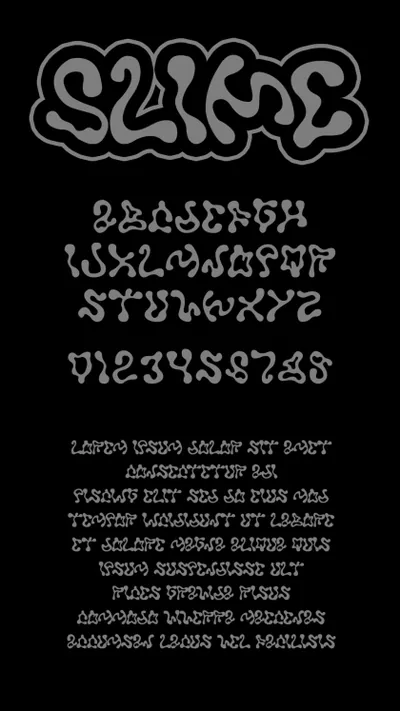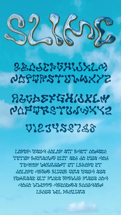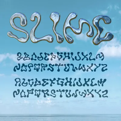 SLIME 的灵感来自 Y2K 美学 + chrome 外观,这种字体有一些弯曲的形状,非常适合徽标或大标题,每个字母都包含其他版本,因此您可以混合字形!