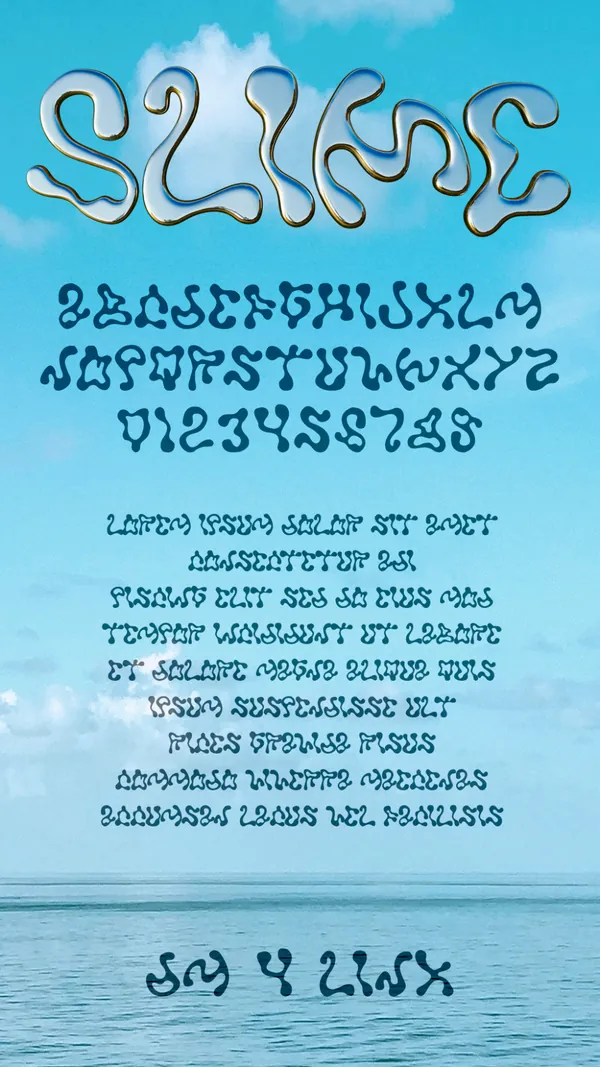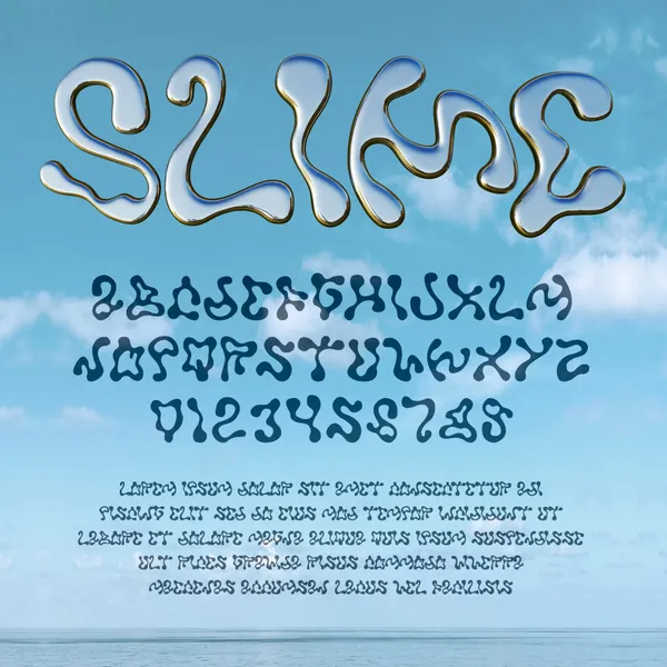 图穷联素材库 » 新复古未来派酸性艺术镀铬美学液体蜿蜒创意海报排版装饰英文字体 SLIME FONT