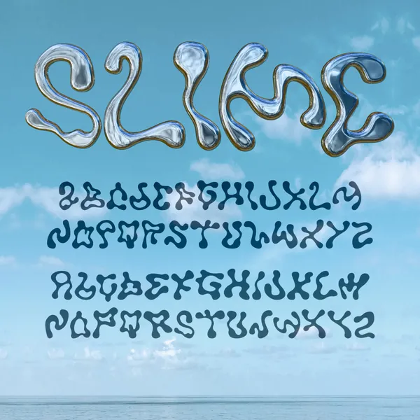 新复古未来派酸性艺术镀铬美学液体蜿蜒创意海报排版装饰英文字体 SLIME FONT