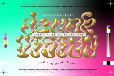 图穷联素材库 » 潮流酸性艺术液态扭曲光滑实验性抽象装饰英文字体 Drunk Vision - Creative Font
