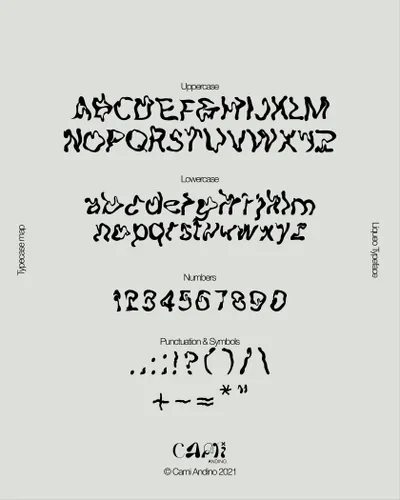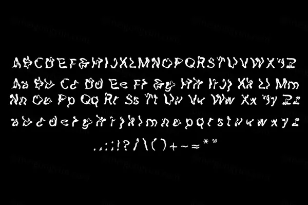 图穷联素材库 » 潮流酸性艺术暗黑金属地下小众摇滚下哈液态扭曲设计装饰英文字体 Liqueo Typeface