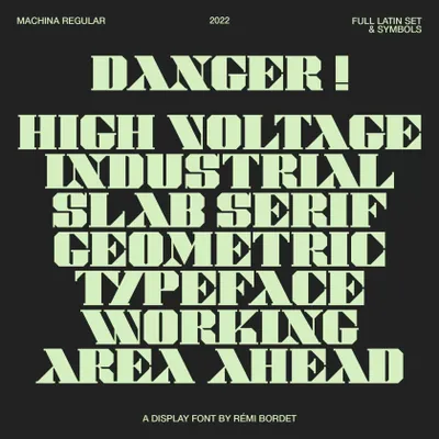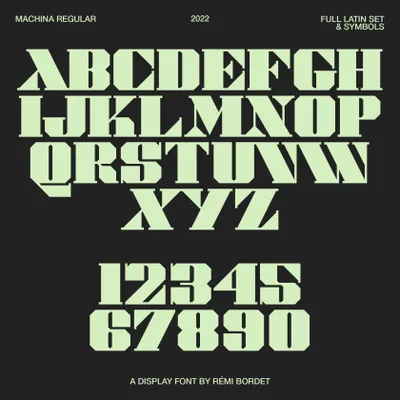 Machina 是一种重几何字体,灵感来自工业平板衬线,并以现代和实验性的方法重新混合。