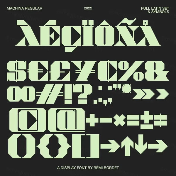 图穷联素材库 » 新复古未来派科幻工业风几何海报排版设计英文装饰字体 Remi Bordet - Machina