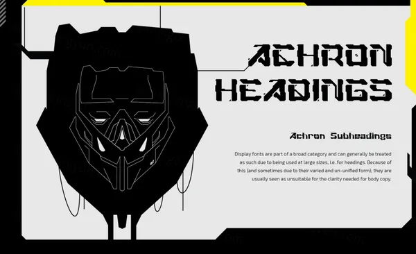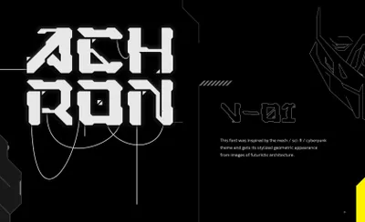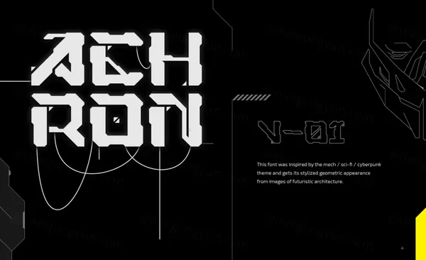 图穷联素材库 » 潮流未来派赛博朋克科幻主义工业机械科技几何硬角英文装饰字体 Achron - Display Font