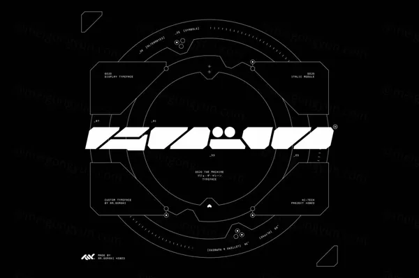图穷联素材库 » 潮流未来派赛博朋克工业科幻机能HUD界面设计装饰英文字体素材 AN Gorski - Gojo