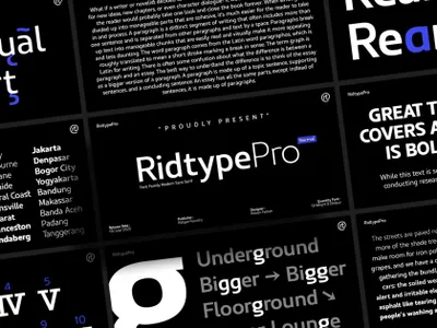 图穷联素材库 » 高质量现代品牌设计海报杂志排版无衬线英文字体 Ridtype Pro Font Family