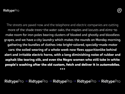 Ridtype 字体是根据字母设计和粗细类型创建的,以便在所有角色中兼容。它适用于所有业务领域,适合现代和经典业务实施的支持者。