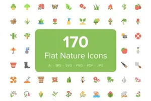 170个扁平化自然图标 170 Flat Nature Icons