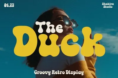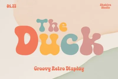图穷联素材库 » 复古怪诞主义大胆童趣优雅女性海报杂志标题英文字体 The Duck - Groovy Retro Font