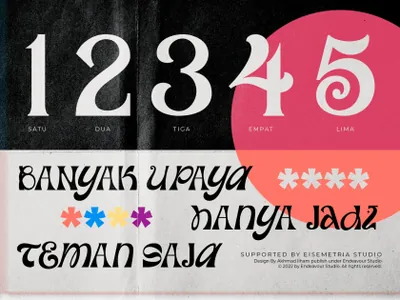 尤里卡!这就是 Arcimides 所说的,也是我们对这种字体所说的。为了达到我们自己的和谐,我们必须突破所有印刷基础的极限。我们并不关心排版的所有原则。我们感兴趣的是如何在仍然使用动态字体的同时实现完全的不对称平衡。这就是我们将这款字体命名为 Eureka 的原因,Aha moment 意味着在拥挤的市场中脱颖而出。