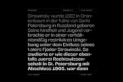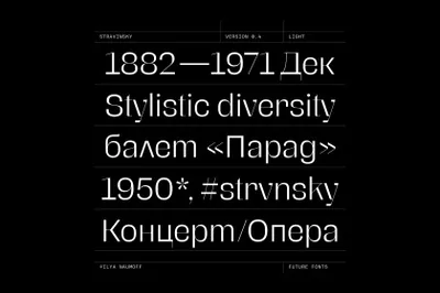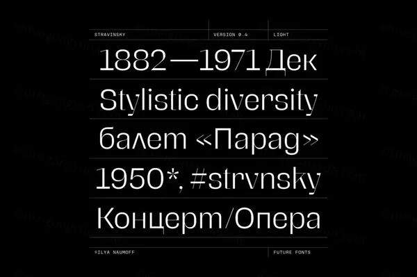 图穷联素材库 » 高质量实验性酸性艺术逆反差海报杂志排版设计英文字体系列 Stravinsky Font Family
