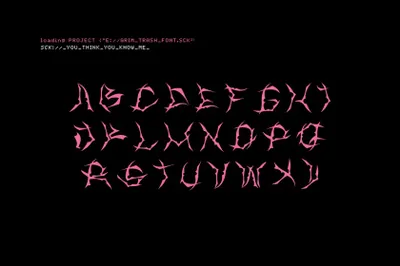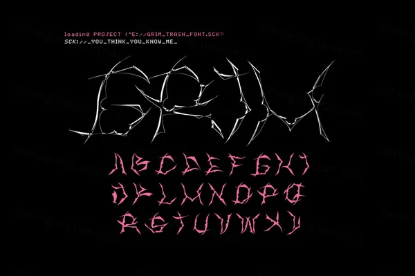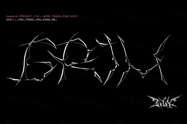 图穷联素材库 » 潮流酸性艺术尖锐刀锋逆反差小众潮牌服饰抽象图形设计英文字体 GRIM TYPEFACE