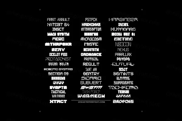 海外设计师全套赛博朋克科幻机械英文字体 LEGACY OF DEFEAT - Whole Font Collection