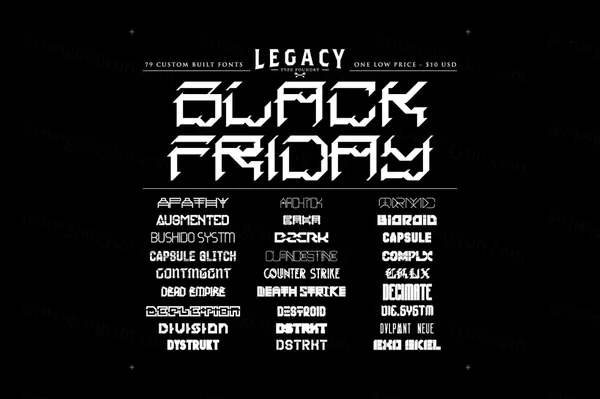 图穷联素材库 » 海外设计师全套赛博朋克科幻机械英文字体 LEGACY OF DEFEAT - Whole Font Collection