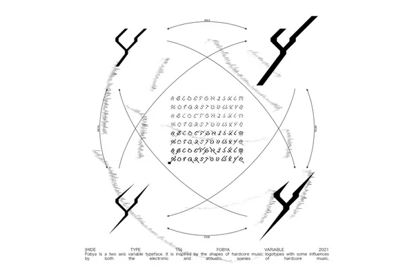 图穷联素材库 » 复古小众音乐美学赛博机能科幻酸性设计英文装饰字体 Fobya Variable [HIDE TYPE 15]