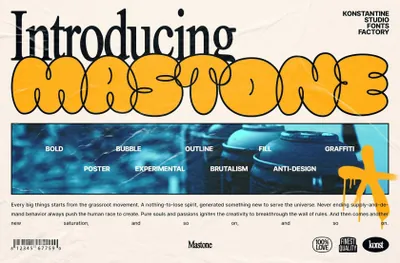 Mastone 的灵感来自于当今平面设计行业的气泡排版趋势。y2k 文化、街头视觉和野蛮主义的全新组合,以及吐泡泡涂鸦风格的实验性触感。