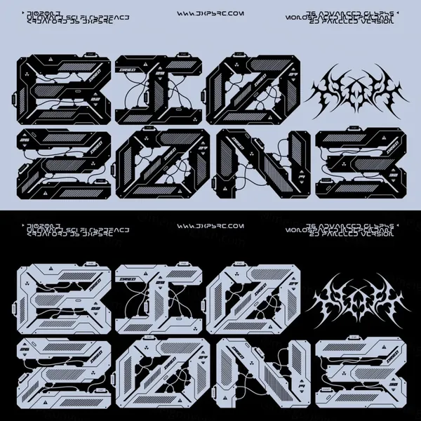 图穷联素材库 » 潮流未来派赛博朋克工业机能机械线路板英文装饰字体 3XPYRE - BIOZON3
