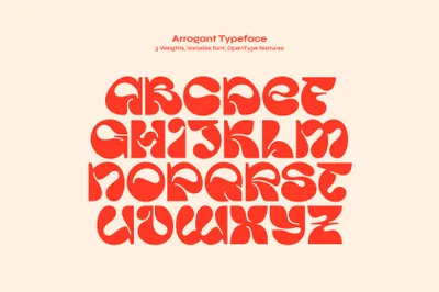 Arrogant 是一种展示性的单格字体,以其表现力和圆润的形状脱颖而出。Arrogant 系列编译了三种字重(常规、轻量和粗体)和一种可变字体,因此它可以在多种尺寸和应用中表现出色。该字体包含 310 个字形,包括字母、数字、标点符号、符号和连字,并支持 93 种语言。
