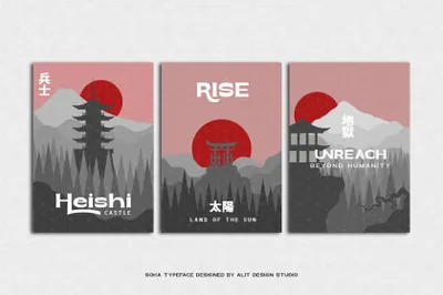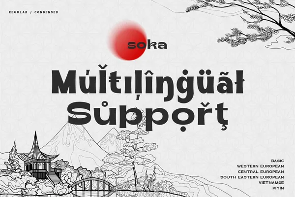 Soka 字体的灵感来自于一种复古风格但仍然现代而独特的无衬线字体。带有日本概念的预览,Soka 字体在其他复古字体中看起来很独特。