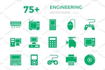 图穷联素材库 » 75 绿色能源矢量图标 75 Engineering Vector Icons