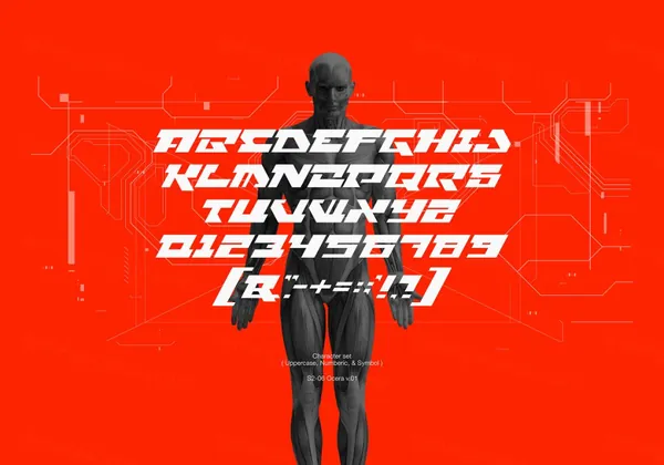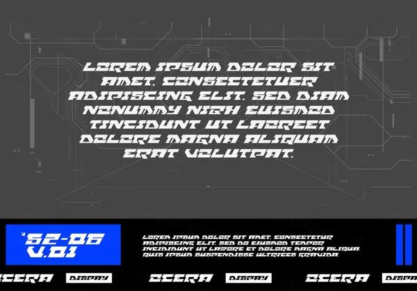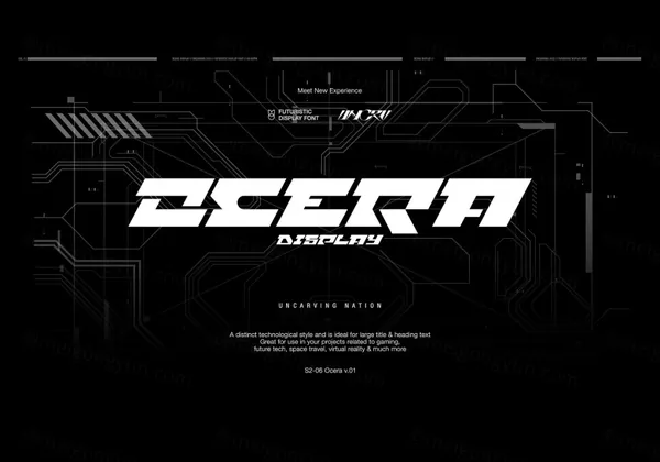 图穷联素材库 » 新复古未来派赛博朋克工业机能科幻风太空虚拟现实游戏英文字体 Ocera - Display Font