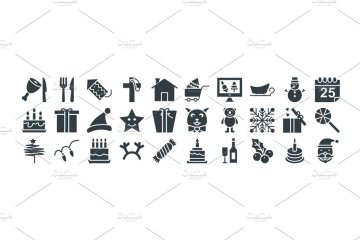 图穷联素材库 » 100 圣诞矢量图标 100 Christmas Vector Icons