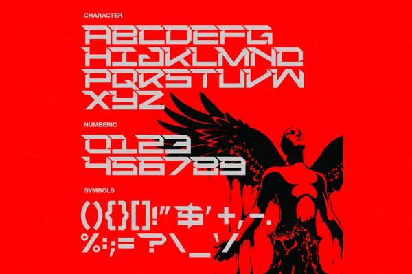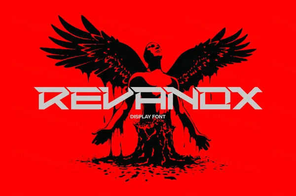 图穷联素材库 » 潮流酸性未来赛博机能工业科幻几何电影海报杂志排版英文字体 Avortic - Revanox Font