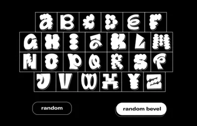 图穷联素材库 » 潮流酸性艺术Y2K千禧年复古风随机怪诞趣味混搭英文装饰字体 Random (font)