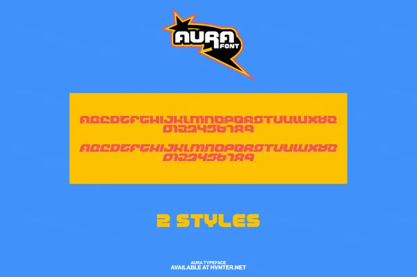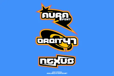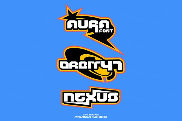 图穷联素材库 » 复古Y2K千禧风赛博机能运动机车徽标贴纸设计英文字体 AURA Typeface