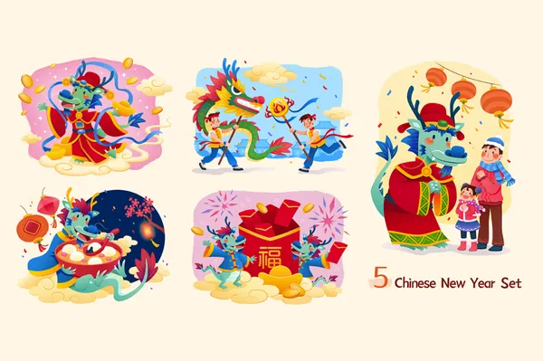 图穷联素材库 » 东方传统新年龙年海报招贴贺卡年画红包宣传EPS矢量插画素材-4