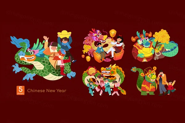 图穷联素材库 » 东方传统新年龙年海报招贴贺卡年画红包宣传EPS矢量插画素材-3