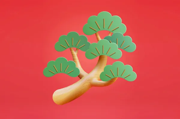 长寿松枝新春龙年中国传统春节新年矢量插画素材