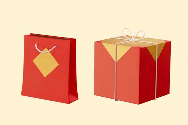 礼盒礼袋新春龙年中国传统春节新年矢量插画元素素材