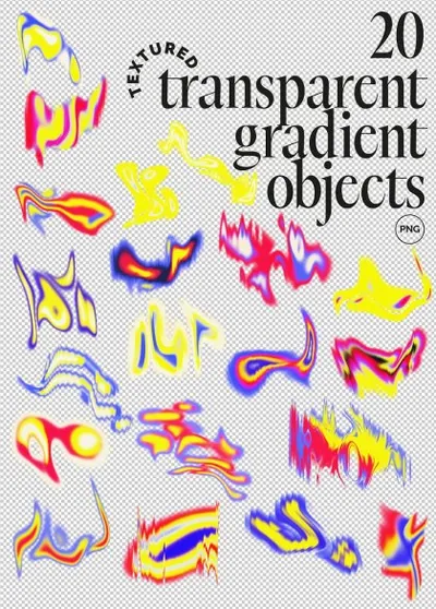20 个 PNG 格式的透明渐变对象(大小 3000-5000 像素)