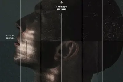 图穷联素材库 » 复古做旧艺术半色调磨损颗粒感印刷效果PSD模板素材 Old Print Studio Photo Effect