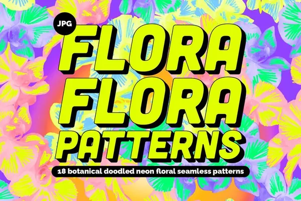 图穷联素材库 » 复古酸性艺术霓虹灯迷幻花卉植物图案设计素材合辑 Neon Floral Maximalist Patterns