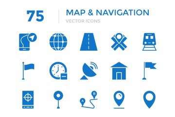 75个地图和导航矢量图标 75 Maps and Navigation Vect